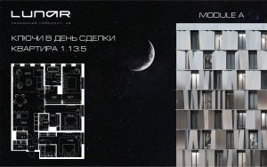 Квартира с 3-мя спальнями общей площадью 137 кв. метров с отделкой white box на 13 этаже комплекса премиум-класса LUNAR: