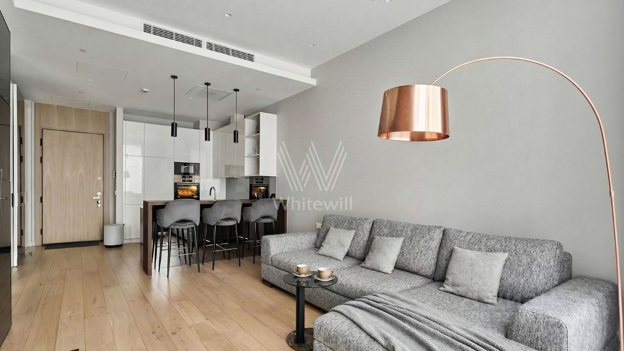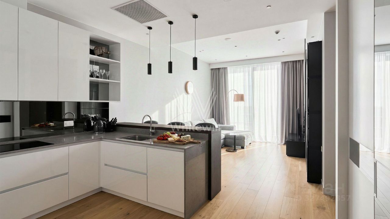 Видовые апартаменты с 1 спальней общей площадью 60 м² в комплексе небоскрёбов премиум-класса "Нева Тауэрс". Апартамент с готовой премиальной отделкой расположен на 49 этаже в башне "Т1". Светлый интерьер оформлен в современном стиле. Планировка: кухня-гостиная, уютная спальня со встроенным шкафом, ванная комната, прихожая со встроенным гардеробом. Благодаря панорамному остеклению от пола до потолка пространство наполнено светом. Из окон открываются виды на башни "Москва-Сити" и центр города.