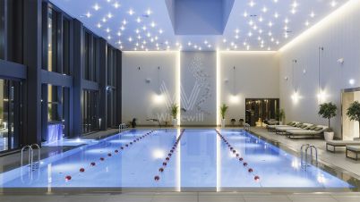 Главное о доме. Neva Towers — две башни в Москва-Сити с лобби на высоте атриума и панорамами делового центра. На стилобате обустроили приватный парк для жителей: газоны, шезлонги, дорожки и воркаут-зона — удобно выйти на солнце прямо из корпуса. В галерее у основания работают кафе и рестораны, рядом — повседневные сервисы. Внутри — клубные пространства и Crocus Fitness с бассейном под открытым небом, джакузи и спа-зоной. Вечером архитектурная подсветка подчёркивает силуэт башен, и двор превращается в тихую террасу над городом. Для автомобилей предусмотрели многоуровневый паркинг с лифтовым доступом к лобби.