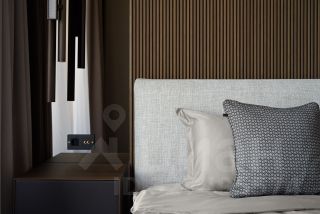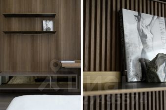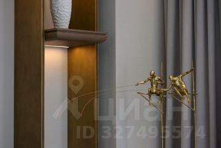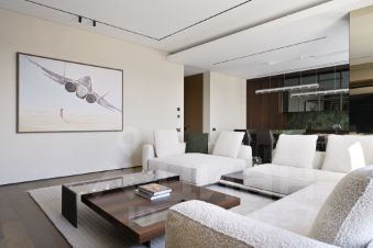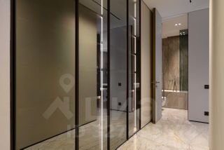 В квартире выполнена премиальная дизайнерская отделка с использованием высококачественных и натуральных материалов, таких как: натуральный мрамор, анодированная бронза, натуральный итальянский шпон, анодированная латунь.