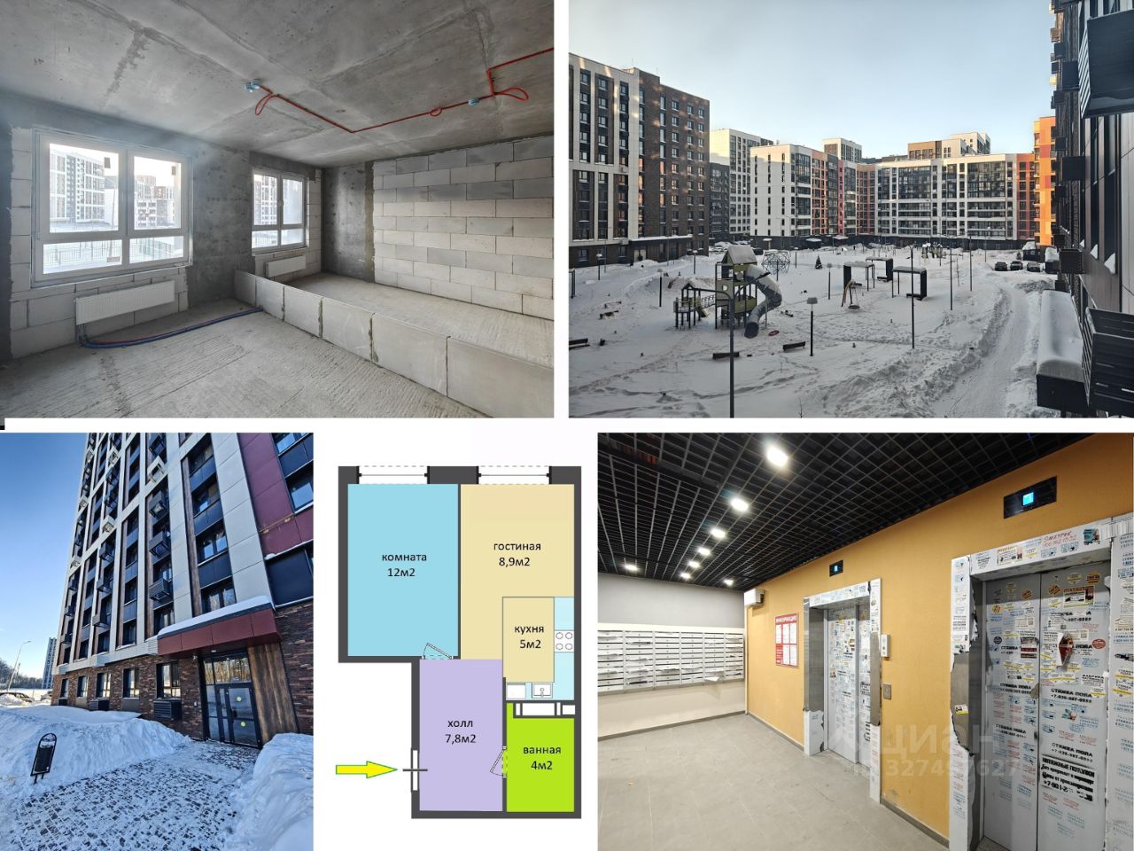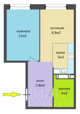 + кухня-гостиная 15м2 + комната 12м2