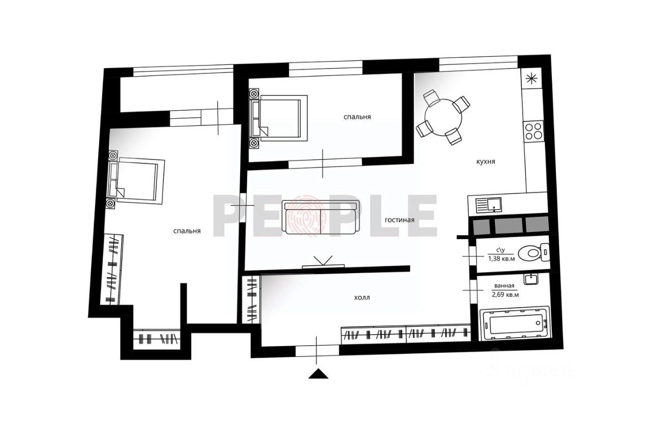 • 2 спальни