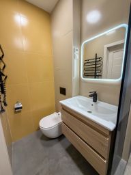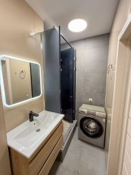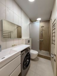 В данный момент квартира поделена на две: студию и 1-а комнатную квартиру. Обе имеют кухню и свой санузел, объединенные общим коридором. Предлагается или как готовый бизнес (сейчас обе квартиры сдаются), или для личного проживания (можно вернуть в прежнее состояние, глобальных перепланировок не производилось).