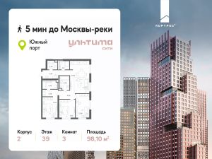 Продаётся 3-комнатная квартира от застройщика ГК "КОРТРОС" в жилом комплексе бизнес-класса УЛЬТИМА Сити. Квартира расположена на 39 этаже 52 этажного корпуса 2. Общая площадь 98,10 м². Без отделки.