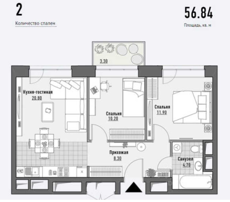 Продается 2-комнатная КВАРТИРА в ЖК от Sminex!
