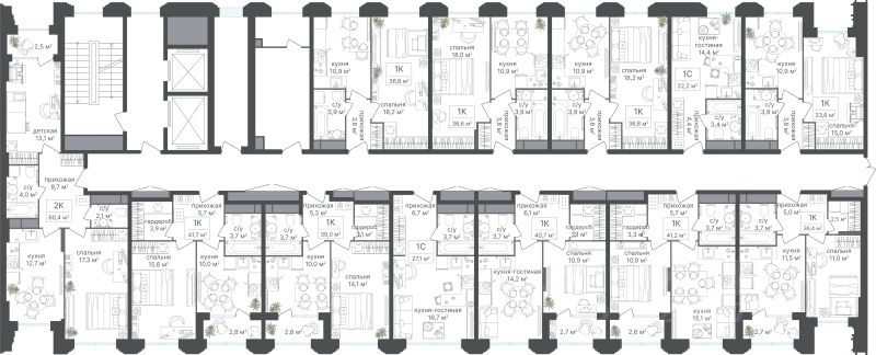 Для покупки доступны лоты метражом от 22 до 62 квадратных метров. Вы можете приобрести студию, а также двух- или трёхкомнатные номера. Во втором случае оператор предложит вам оптимальные варианты по разделению комнат на отдельные номерные единицы. Такой подход существенно повышает доходность и помогает обеспечить полную загрузку - чтобы ваш актив работал с полной отдачей.