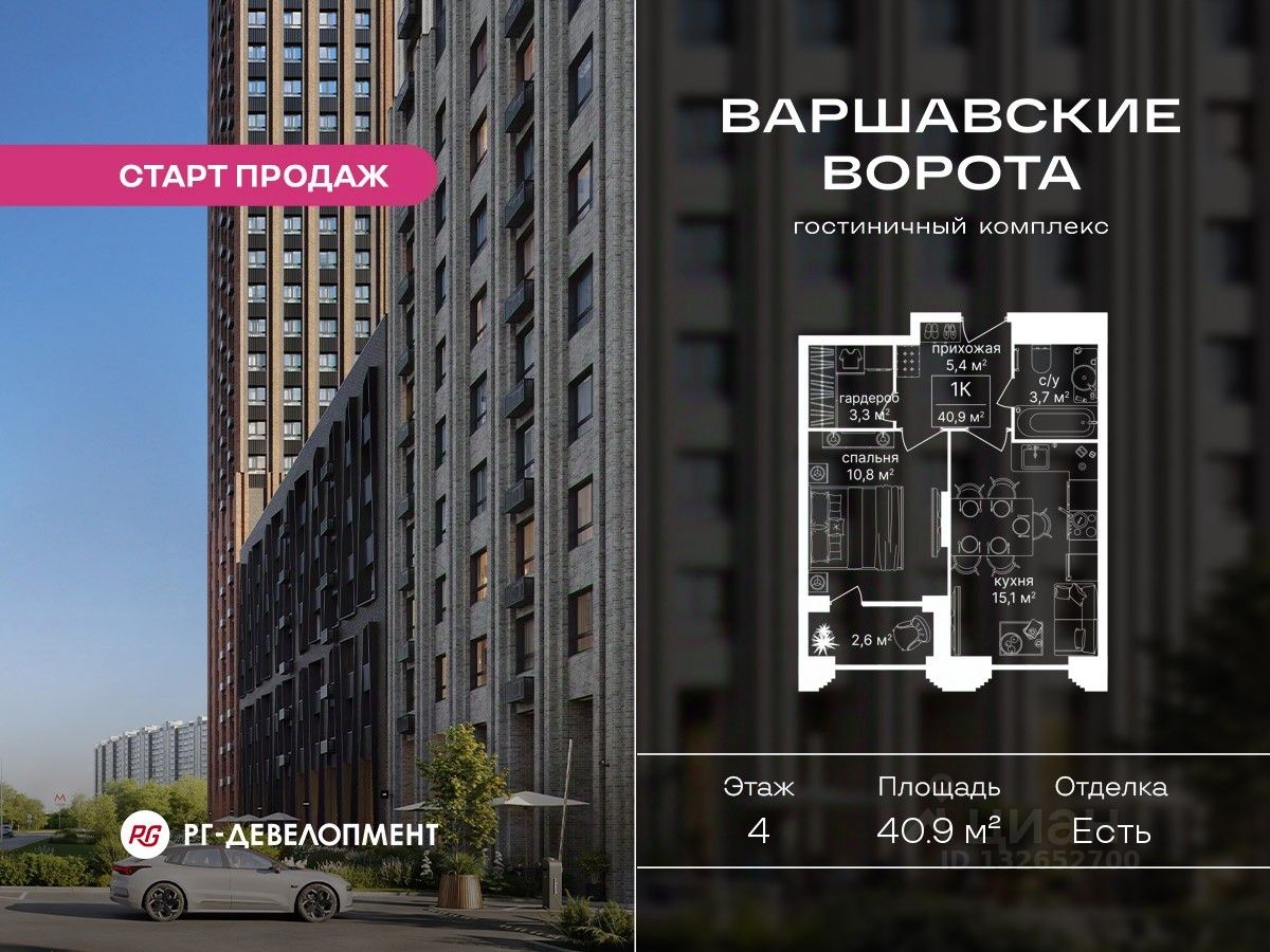 Продаются 1-комнатные апартаменты 40.9 кв.м. в Гостиничном комплексе "Варшавские ворота" на 4-м этаже 30 этажного дома. Гостиничный комплекс "Варшавские ворота" — это инвестиционный продукт в составе одноименного МФК, состоит из гостиничных номеров под сдачу в аренду, где актуальные тренды рынка объединились с устойчивыми ценностями коммерческой недвижимости.