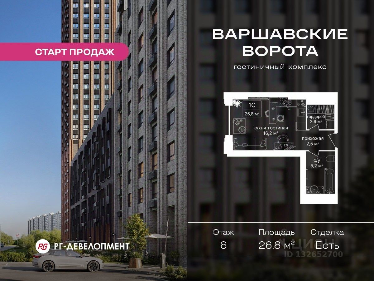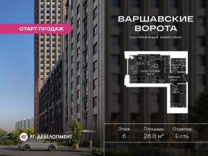 Продаются Апартаменты-студия 26.8 кв.м. в Гостиничном комплексе "Варшавские ворота" на 6-м этаже 30 этажного дома. Гостиничный комплекс "Варшавские ворота" — это инвестиционный продукт в составе одноименного МФК, состоит из гостиничных номеров под сдачу в аренду, где актуальные тренды рынка объединились с устойчивыми ценностями коммерческой недвижимости.