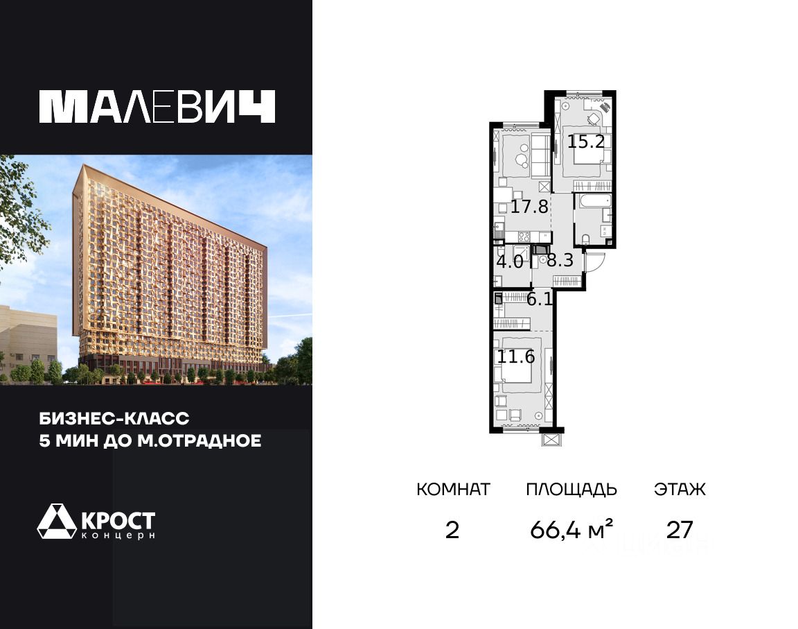 Без отделки. Срок сдачи: 1 кв. 2026 г.