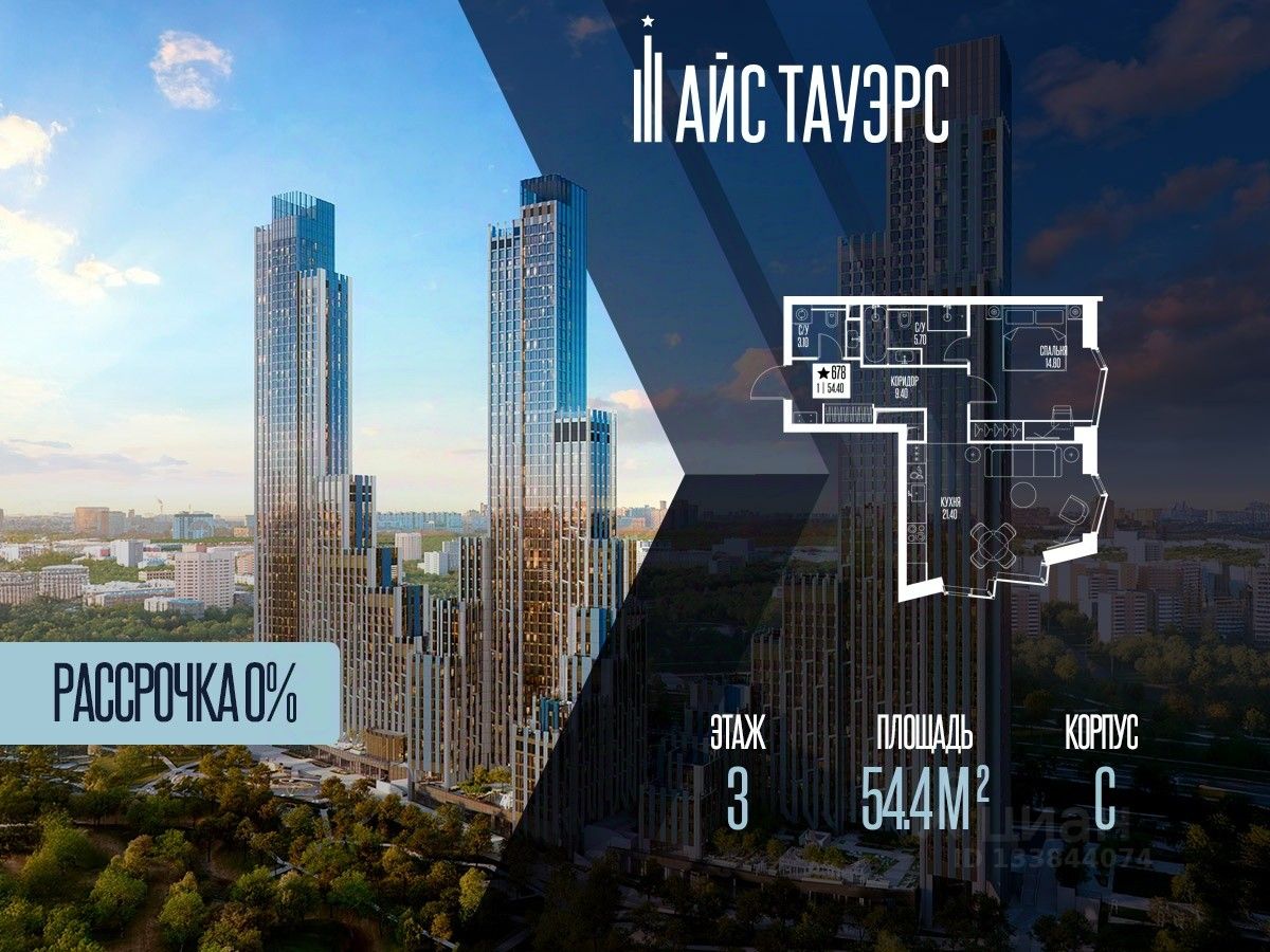 Беспроцентная рассрочка от застройщика. Выгода до 12%. Продается 1-комнатная квартира на 3 этаже, 54.4 кв.м. площади в жилом комплексе "Айс Тауэрс", который расположен в Западном административном округе Москвы. Архитектура комплекса отличается панорамным остеклением фасадов.
