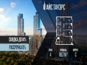 Беспроцентная рассрочка от застройщика. Выгода до 14%. Продается 3-комнатная квартира на 4 этаже, 88.7 кв.м. площади в жилом комплексе "Айс Тауэрс", который расположен в Западном административном округе Москвы. Архитектура комплекса отличается панорамным остеклением фасадов.