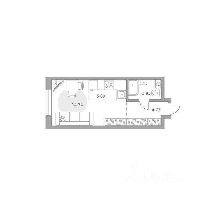 Продаётся студия 87, площадью 29,29 м², на 8 этаже в ЖК "Дубровка от Гранель" корпус 2. Стоимость — от 16243635 руб. Квартира без отделки, планировка односторонняя, окна на улицу.