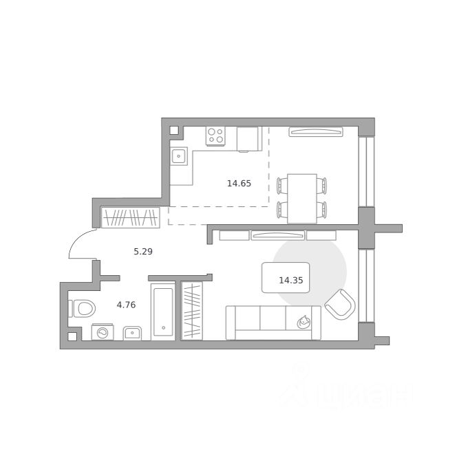Жилая площадь14,4 м²