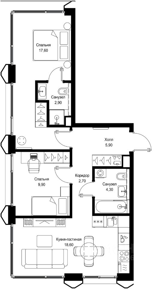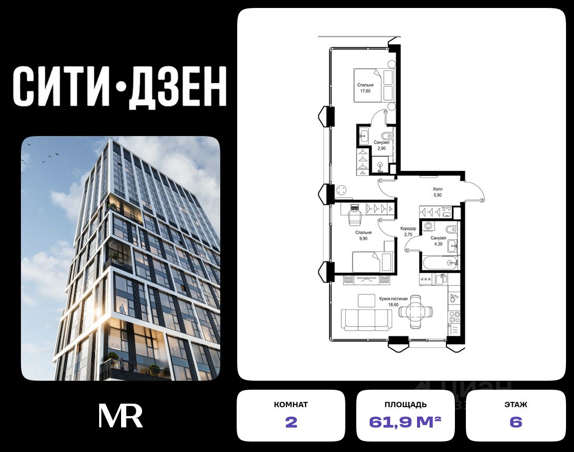 Продается 2-комнатная квартира от застройщика в жилом мультиквартале СИТИДЗЕН на 6-м этаже в корпусе #5. Общая площадь лота составляет 61.90 м²