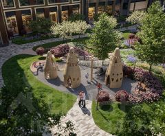 Концепция благоустройства территории мультиквартала предусматривает большое количество вечнозеленых растений, что создает ощущение максимальной близости к природе. Жителей квартала ждут места для отдыха, игр, занятий спортом и прогулок с домашними питомцами. В приватном дворе с собственным садом предусмотрена зеленая комьюнити-гостиная для дружеского отдыха и общения, одна из стен которой подходит для кинопроекций, а также зеленый рабочий кабинет в саду (бизнес-гардена), оборудованный wi-fi станцией и usb-разъёмами для зарядки устройств. Маленьких жителей ждут авторские игровые площадки для разных возрастных групп (от 0 до 12 лет).
