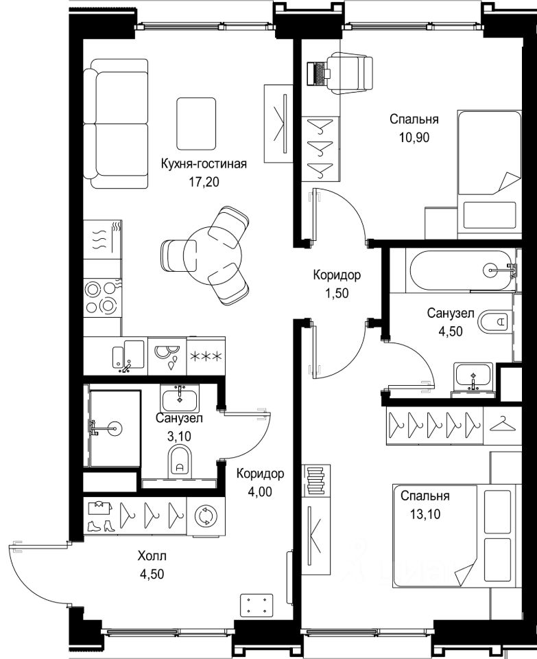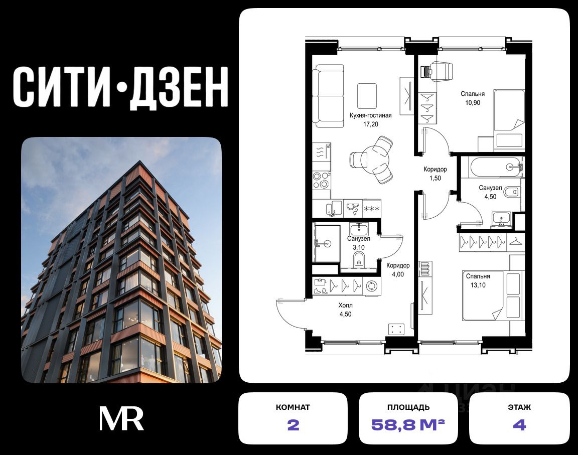 Продается 2-комнатная квартира от застройщика в жилом мультиквартале СИТИДЗЕН на 4-м этаже в корпусе #4. Общая площадь лота составляет 58.80 м²