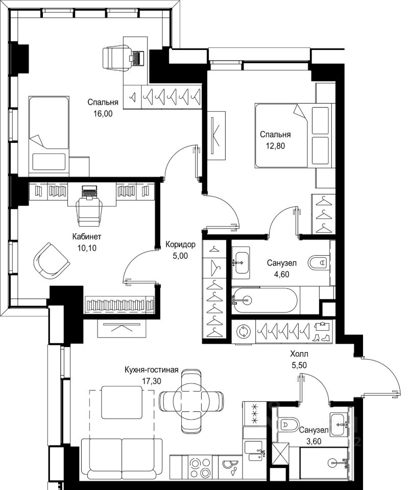 Продается 3-комнатная квартира от застройщика в жилом мультиквартале СИТИДЗЕН на 17-м этаже в корпусе #3. Общая площадь лота составляет 74.90 м²