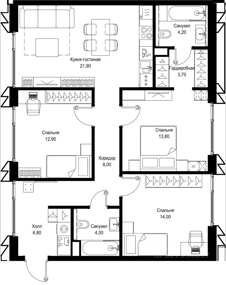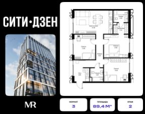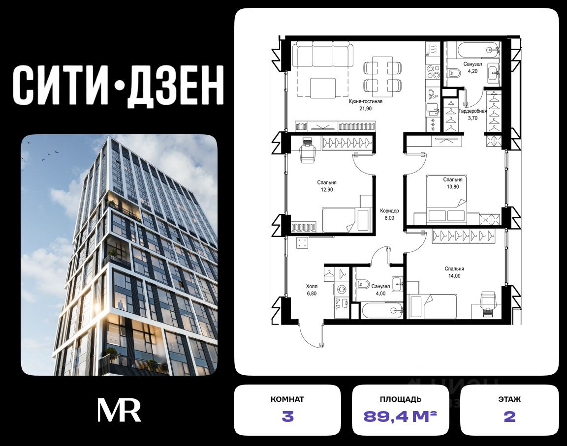 Продается 3-комнатная квартира от застройщика в жилом мультиквартале СИТИДЗЕН на 2-м этаже в корпусе #3. Общая площадь лота составляет 89.40 м²