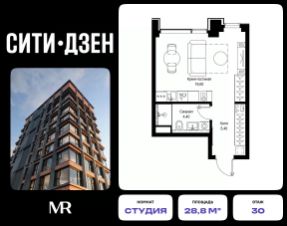 Продается студия от застройщика в жилом мультиквартале СИТИДЗЕН на 30-м этаже в корпусе #2. Общая площадь лота составляет 28.80 м²