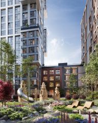 Концепция благоустройства территории мультиквартала предусматривает большое количество вечнозеленых растений, что создает ощущение максимальной близости к природе. Жителей квартала ждут места для отдыха, игр, занятий спортом и прогулок с домашними питомцами. В приватном дворе с собственным садом предусмотрена зеленая комьюнити-гостиная для дружеского отдыха и общения, одна из стен которой подходит для кинопроекций, а также зеленый рабочий кабинет в саду (бизнес-гардена), оборудованный wi-fi станцией и usb-разъёмами для зарядки устройств. Маленьких жителей ждут авторские игровые площадки для разных возрастных групп (от 0 до 12 лет).
