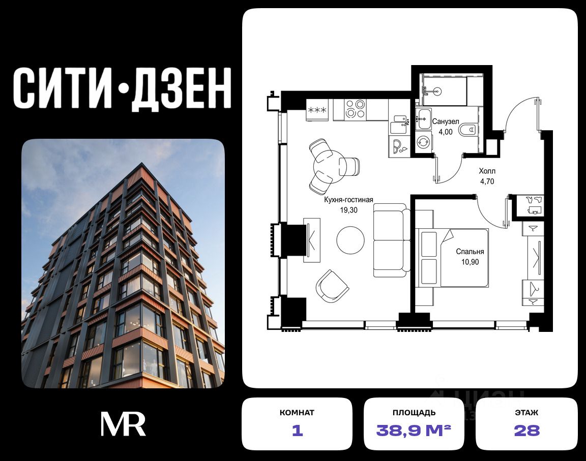 Продается 1-комнатная квартира от застройщика в жилом мультиквартале СИТИДЗЕН на 28-м этаже в корпусе #2. Общая площадь лота составляет 38.90 м²