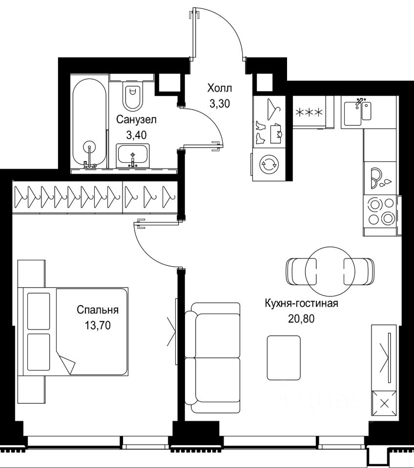 Продается 1-комнатная квартира от застройщика в жилом мультиквартале СИТИДЗЕН на 25-м этаже в корпусе #2. Общая площадь лота составляет 41.20 м²