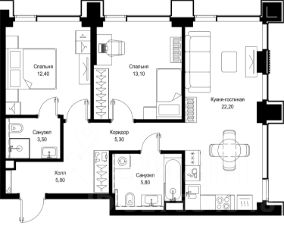Продается 2-комнатная квартира от застройщика в жилом мультиквартале СИТИДЗЕН на 36-м этаже в корпусе #2. Общая площадь лота составляет 68.10 м²