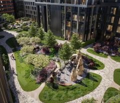 Концепция благоустройства территории мультиквартала предусматривает большое количество вечнозеленых растений, что создает ощущение максимальной близости к природе. Жителей квартала ждут места для отдыха, игр, занятий спортом и прогулок с домашними питомцами. В приватном дворе с собственным садом предусмотрена зеленая комьюнити-гостиная для дружеского отдыха и общения, одна из стен которой подходит для кинопроекций, а также зеленый рабочий кабинет в саду (бизнес-гардена), оборудованный wi-fi станцией и usb-разъёмами для зарядки устройств. Маленьких жителей ждут авторские игровые площадки для разных возрастных групп (от 0 до 12 лет).