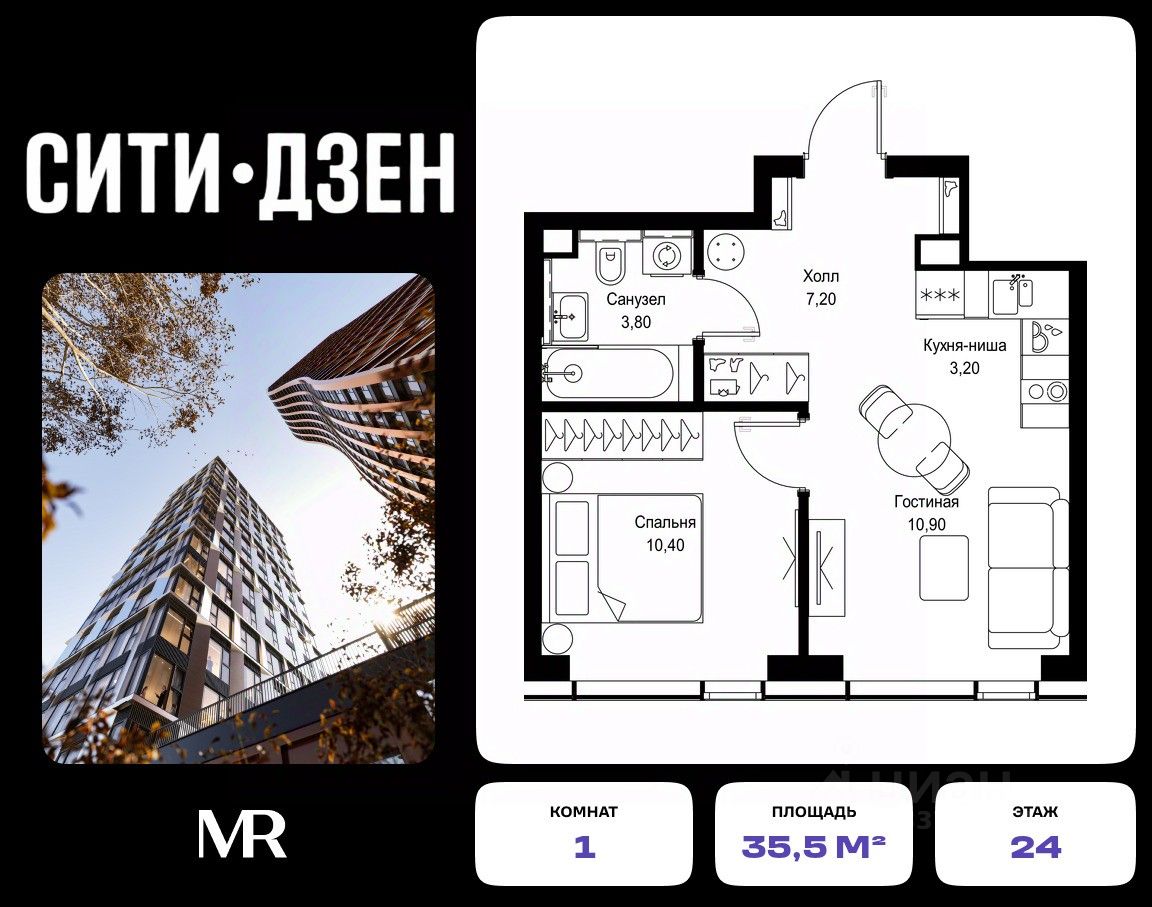 Продается 1-комнатная квартира от застройщика в жилом мультиквартале СИТИДЗЕН на 24-м этаже в корпусе #6. Общая площадь лота составляет 35.50 м²