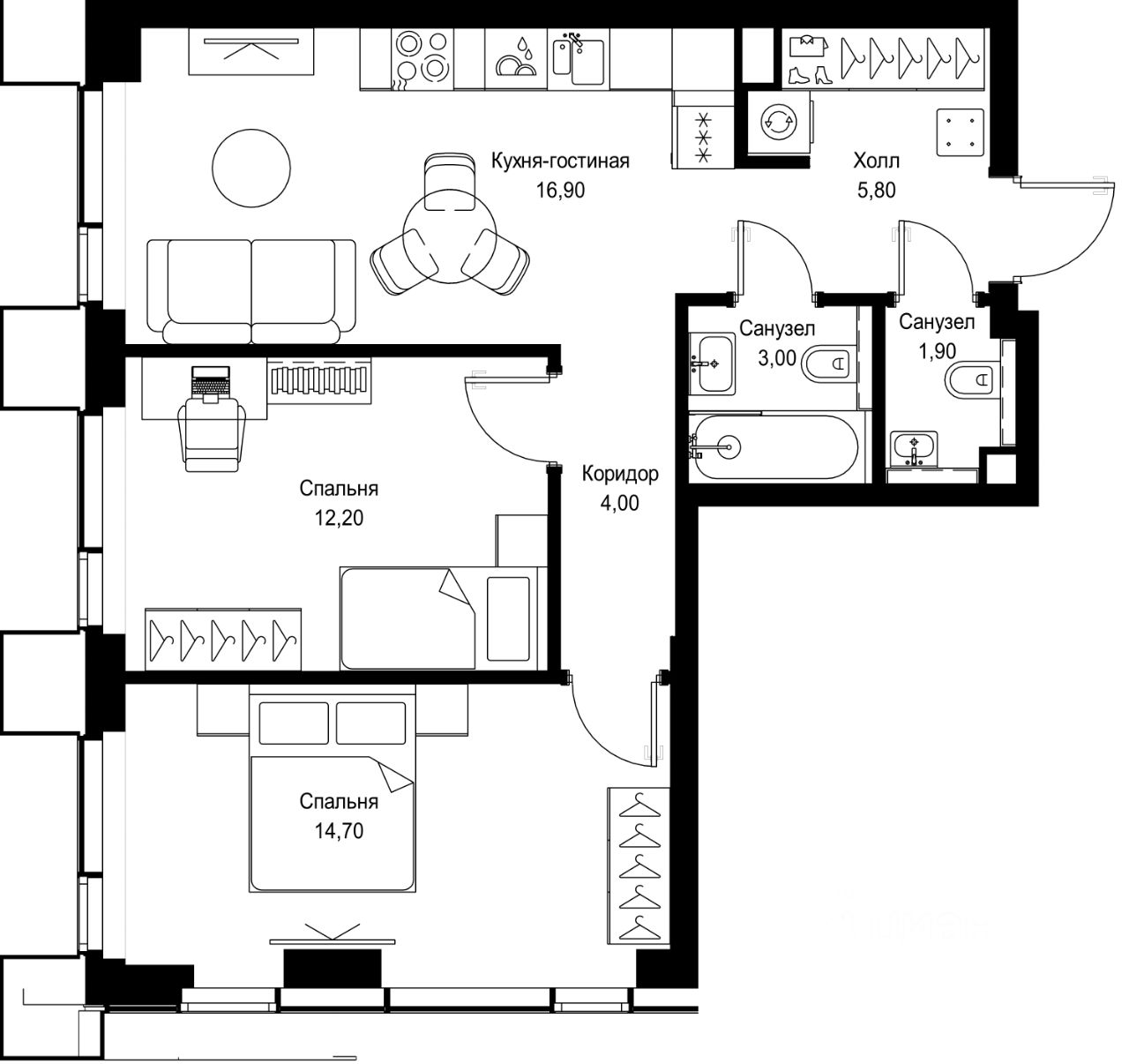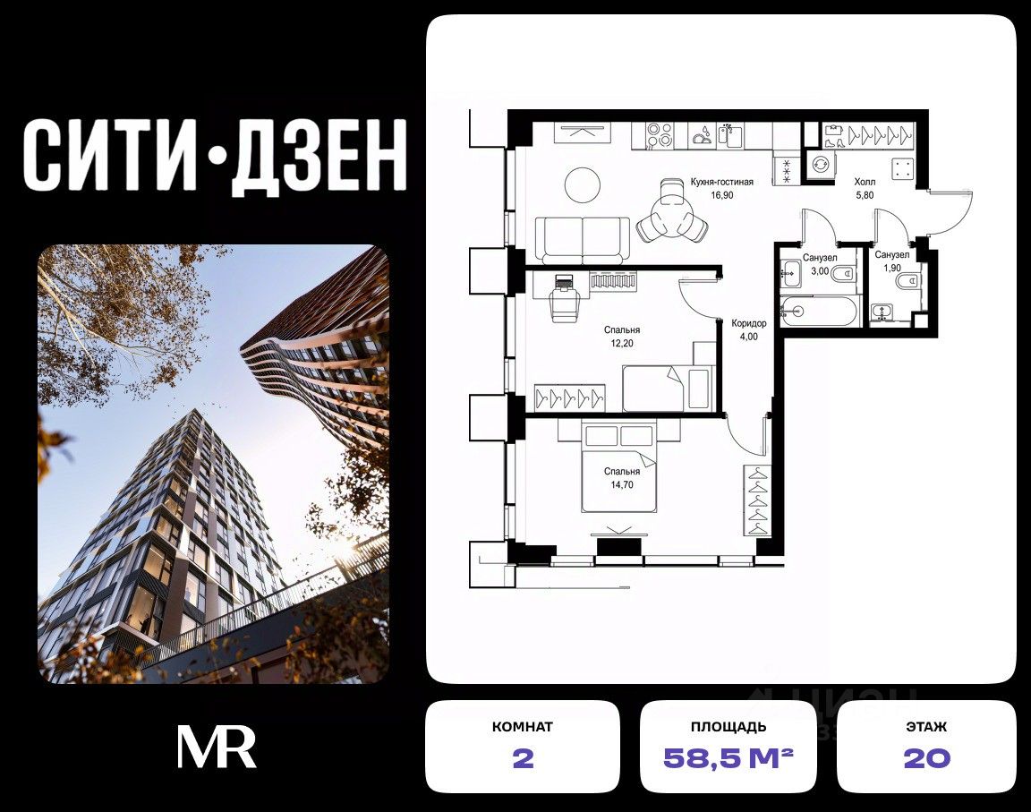 Продается 2-комнатная квартира от застройщика в жилом мультиквартале СИТИДЗЕН на 20-м этаже в корпусе #6. Общая площадь лота составляет 58.50 м²