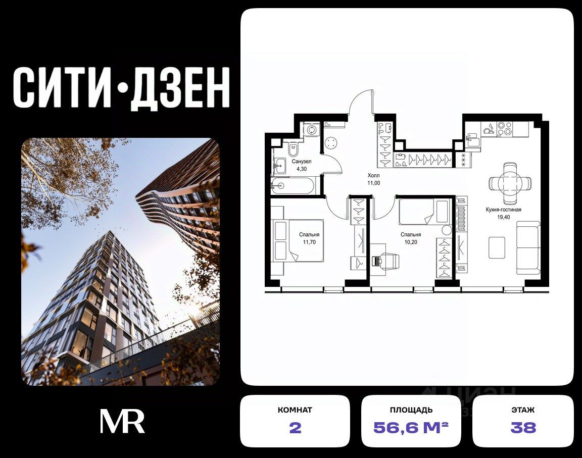 Продается 2-комнатная квартира от застройщика в жилом мультиквартале СИТИДЗЕН на 38-м этаже в корпусе #6. Общая площадь лота составляет 56.60 м²