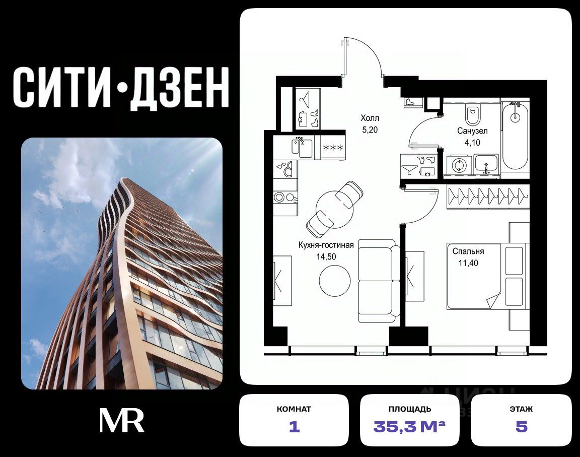 Продается 1-комнатная квартира от застройщика в жилом мультиквартале СИТИДЗЕН на 5-м этаже в корпусе #6. Общая площадь лота составляет 35.30 м²