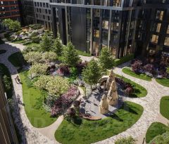 Концепция благоустройства территории мультиквартала предусматривает большое количество вечнозеленых растений, что создает ощущение максимальной близости к природе. Жителей квартала ждут места для отдыха, игр, занятий спортом и прогулок с домашними питомцами. В приватном дворе с собственным садом предусмотрена зеленая комьюнити-гостиная для дружеского отдыха и общения, одна из стен которой подходит для кинопроекций, а также зеленый рабочий кабинет в саду (бизнес-гардена), оборудованный wi-fi станцией и usb-разъёмами для зарядки устройств. Маленьких жителей ждут авторские игровые площадки для разных возрастных групп (от 0 до 12 лет).
