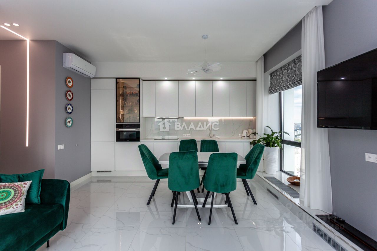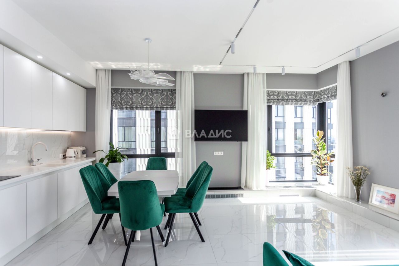 Квартира расположена на 25м этаже, из панорамных окон открываются шикарные виды на Москву. Выполнена дизайнерская отделка по авторскому проекту, использованы только качественные дорогие материалы.
