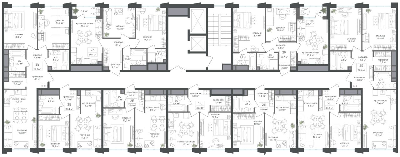 При приобретении квартиры доступна беспроцентная рассрочка с первым платежом от 30%. У покупателя также есть право воспользоваться скидкой в размере 7% от полной стоимости квартиры.