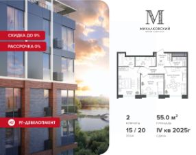 Продаётся 2-к квартира 55,0 кв.м. в ЖК "Михалковский" на 15-м этаже 20 этажного дома.