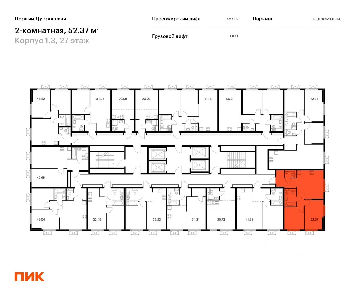 Продаётся 2-комн. квартира площадью 51,1 кв.м на 27 этаже 33 этажного дома (Корпус 1.3, Секция 1) проекта ПИК Первый Дубровский. Светлый просторный подъезд на уровне земли, функциональная планировка, большие окна, c отделкой.