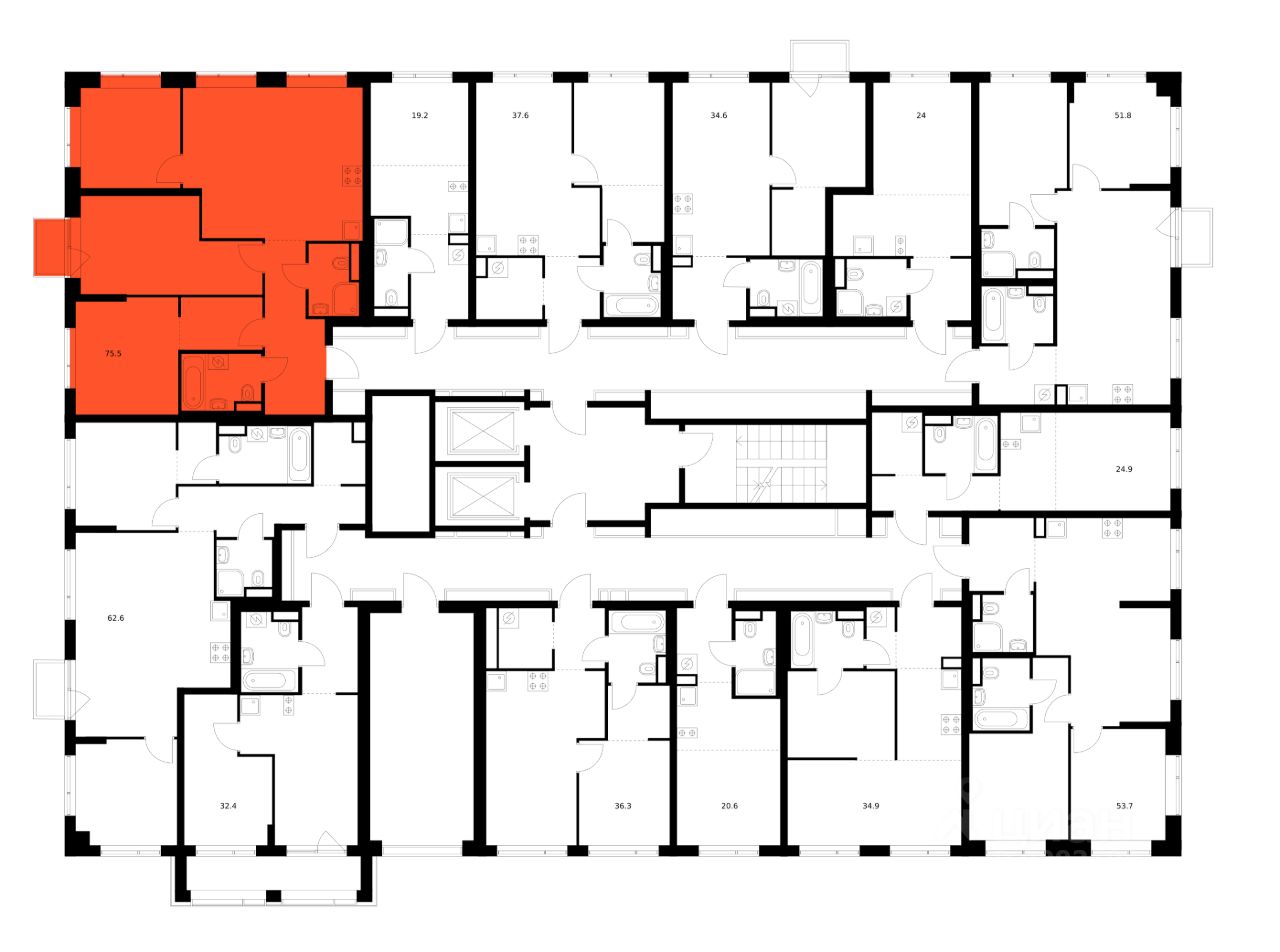 Продаётся 3-комн. квартира площадью 75,5 кв.м на 4 этаже 16 этажного дома (Корпус 2.6/1.4, Секция 4) проекта ПИК Бунинская набережная. Светлый просторный подъезд на уровне земли, функциональная планировка, большие окна, c отделкой.