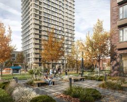 У подъездов будет два выхода: на улицу и во двор-парк. В наших дворах мы установим столы и лавочки со встроенными зарядными устройствами. Не нужно будет возвращаться домой, чтобы зарядить смартфон или ноутбук: можно весь день работать на свежем воздухе.