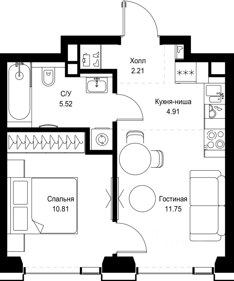 В ЖК Сет продается 1-комнатная квартира площадью 35.20 м², расположенная в корпусе Б, на 27 этаже 59 этажного дома.