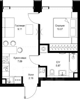В ЖК Сет продается 1-комнатная квартира площадью 34.42 м², расположенная в корпусе Б, на 57 этаже 59 этажного дома.