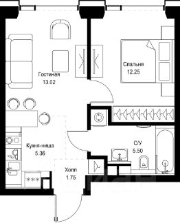 В ЖК Сет продается 1-комнатная квартира площадью 37.88 м², расположенная в корпусе Б, на 24 этаже 59 этажного дома.