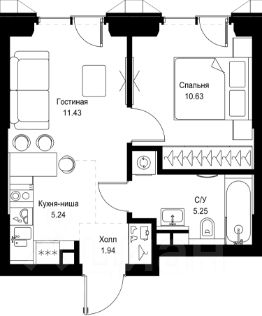 В ЖК Сет продается 1-комнатная квартира площадью 34.49 м², расположенная в корпусе Б, на 12 этаже 59 этажного дома.
