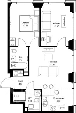 В ЖК Сет продается 2-комнатная квартира площадью 59.40 м², расположенная в корпусе А, на 19 этаже 52 этажного дома.