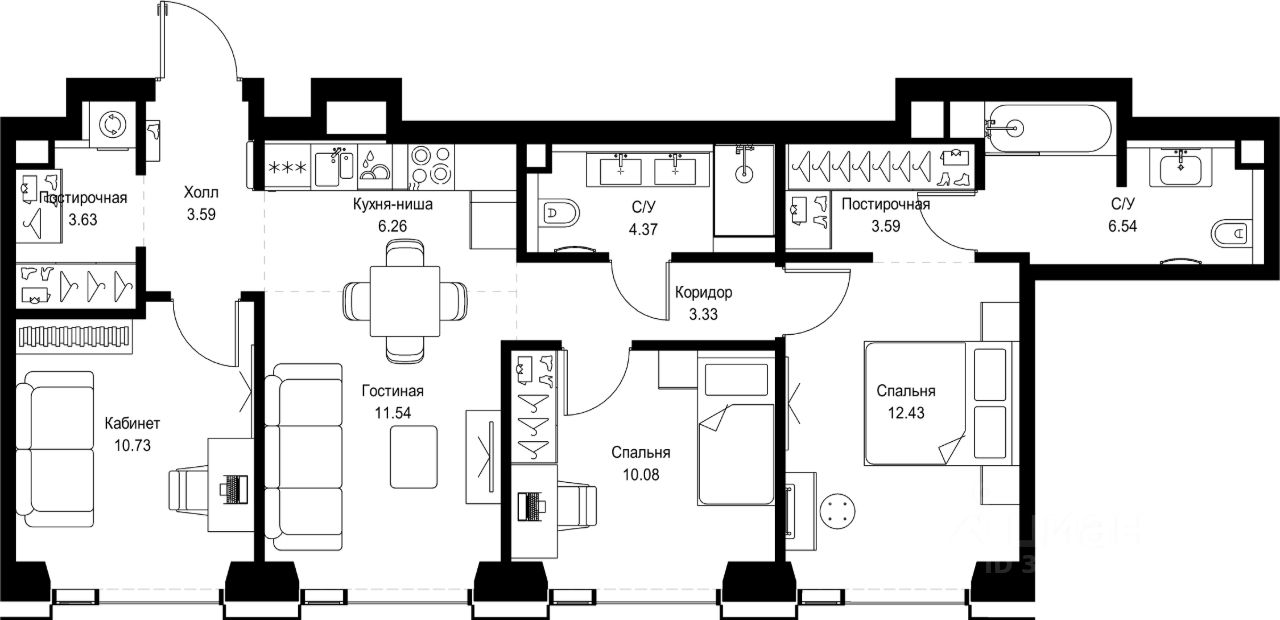 В ЖК Сет продается 3-комнатная квартира площадью 76.09 м², расположенная в корпусе А, на 16 этаже 52 этажного дома.