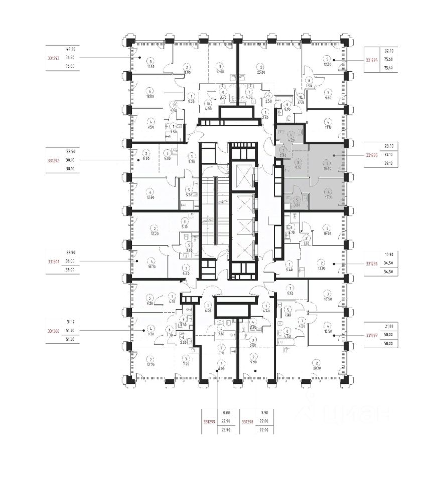 В ЖК Сет продается 1-комнатная квартира площадью 39.80 м², расположенная в корпусе 3, на 31 этаже 45 этажного дома.