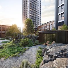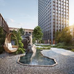 • ""Центральная площадь"" устроена у водного оазиса живописного пруда.