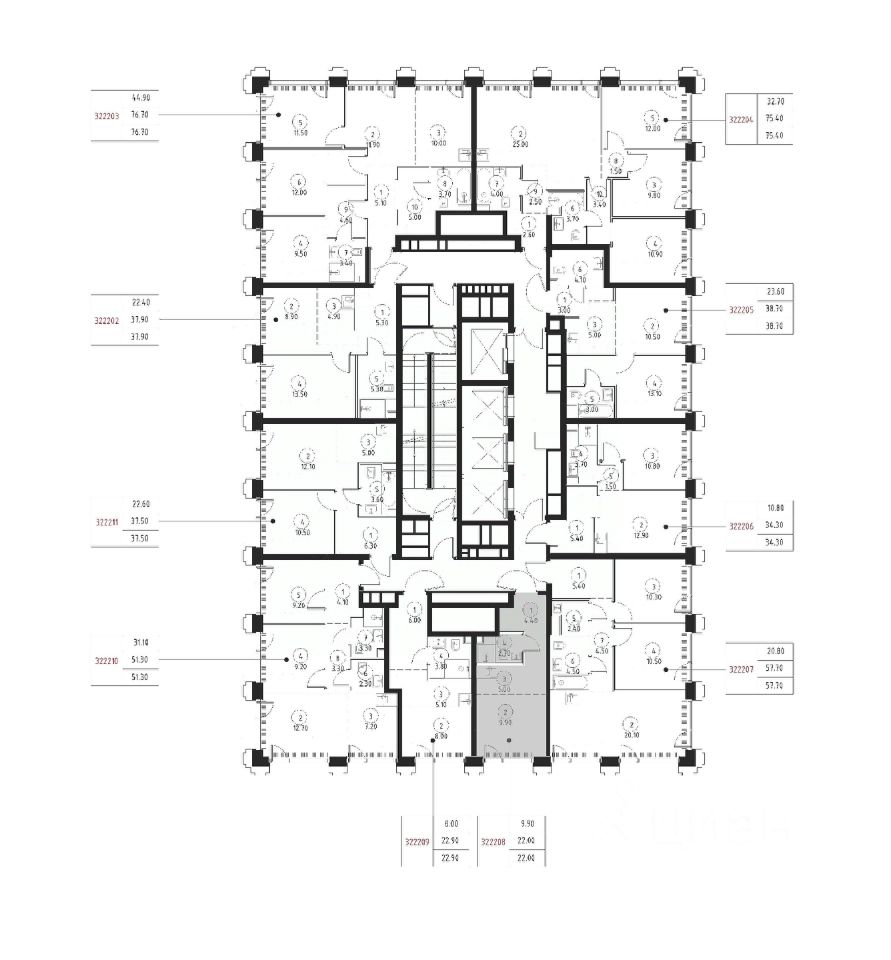 В ЖК Сет продается студия площадью 22 м², расположенная в корпусе 3, на 22 этаже 45 этажного дома.