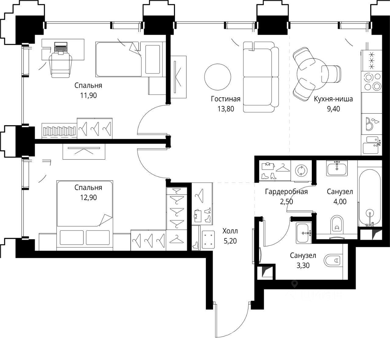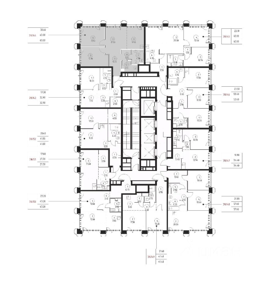 В ЖК Сет продается 2-комнатная квартира площадью 63.60 м², расположенная в корпусе 3, на 16 этаже 45 этажного дома.