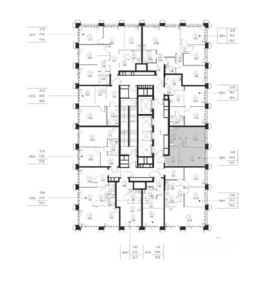 В ЖК Сет продается 1-комнатная квартира площадью 34.50 м², расположенная в корпусе 3, на 19 этаже 45 этажного дома.